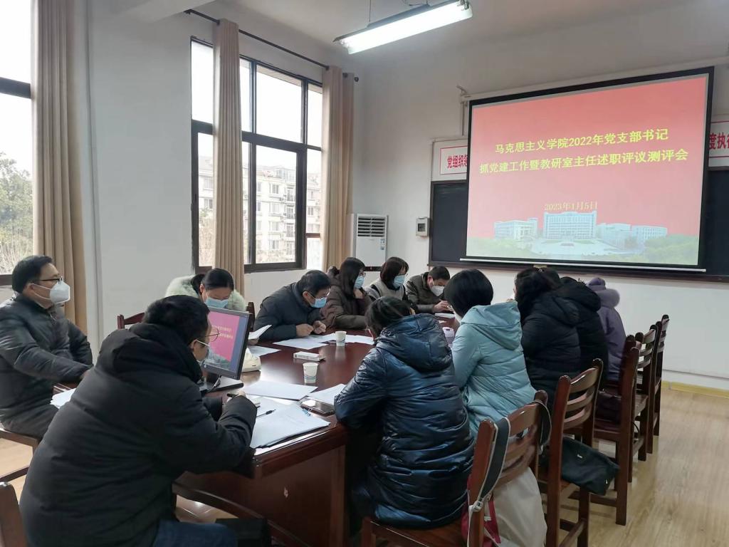 1月5日下午,马克思主义学院在综合楼312会议室召开2022年党支部书记抓党建述职评议会。学院党委委员、纪委委员、党支部书记、分工会主席、教研室负责人、科级干部、教师和学生代表等参加会议。会议由学院党委书记徐惠主持。