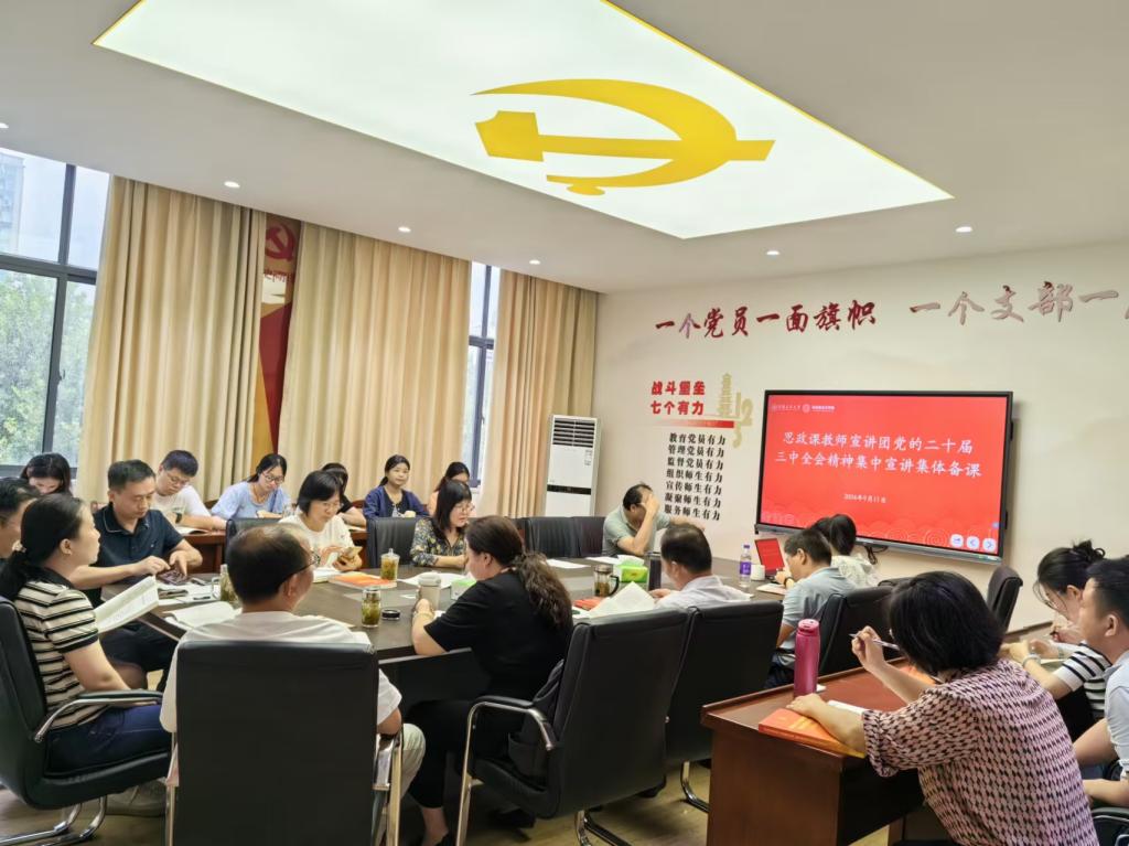 会上,徐惠传达学习了上级关于做好党的二十届三中全会精神学习宣传的通知精神及学校通知要求,通报了思政课教师宣讲团总体工作安排。宣讲团成员倪松根、陆书建分别以“学习贯彻党的二十届三中全会精神”“进一步全面深化改革、推进中国式现代化”为题作了示范宣讲。宣讲紧紧围绕习近平总书记在党的二十届三中全会上的重要讲话和全会《决定》,从深刻认识全会的重大意义,深刻领会《决定》指导思想、总目标和重大原则,全面准确理解《决定》提出的重大举措,全力以赴抓好全会精神贯彻落实等方面进行了讲解。宣讲团成员围绕宣讲内容和宣讲方式等进行了充分研讨交流。