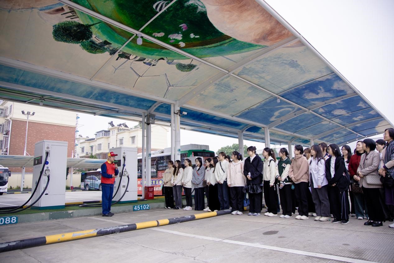接着,师生前往国能神皖马鞍山发电有限责任公司龙上光伏发电站、马鞍山市经开区公交车充电站、采石矶邮轮码头港口岸电站进行实地考察。国网马鞍山供电综合能源公司华云梅、梅田向师生介绍了马鞍山供电公司的新兴产业项目和充电站建设运营情况,宣传了国网马鞍山为实现国家双碳目标作出的重要贡献。