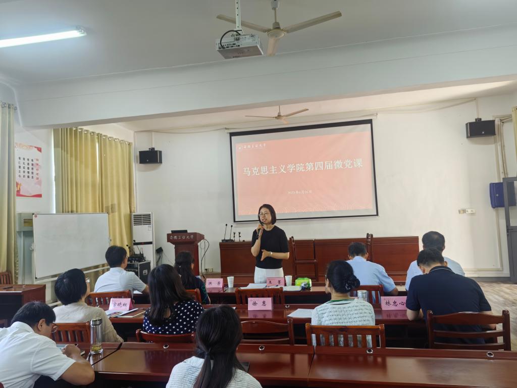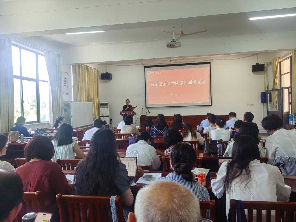 6月16日下午,马克思主义学院第四届微党课比赛在佳山校区综合楼325报告厅举行。担任本次大赛评委的有校党委常委、党委宣传(统战)部部长王菁,校党委巡察工作办公室主任洪芳、化学与化工学院党委书记黄宇弦、建筑工程学院党委书记张虎,以及校纪委正处级纪检监察员杨卫兵。学院班子成员、师生党员代表到场观摩学习。比赛由概论教研室党支部支委杨蓉负责主持。