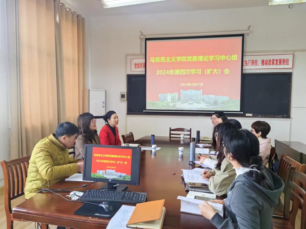 3月21日上午,马克思主义学院在学院312会议室召开传达学习全国两会精神会议暨院党委理论学习中心组2024年第四次学习会,学院党委委员、党支部书记参会,会议由学院党委书记徐惠主持。