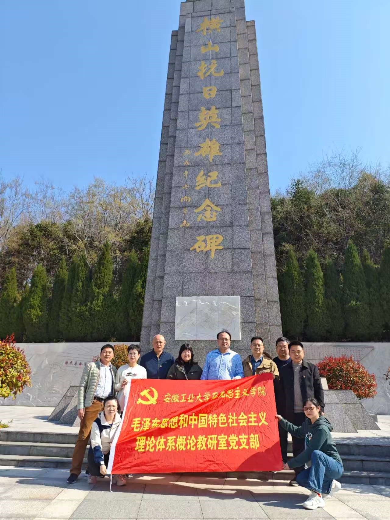 为深化党史学习教育,充分利用大思政资源,赓续革命传统,传承红色基因,激励教师党员凝聚奋进力量,3月22日,马克思主义学院毛泽东思想和中国特色社会主义理论体系概论教研室党支部赴马鞍山市博望区横山抗日英雄纪念碑,开展“缅怀革命先烈 传承红色基因”主题党日活动。