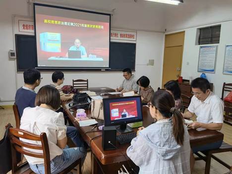 为深入贯彻落实习近平新时代中国特色社会主义思想三进工作,全面贯彻党的教育方针,加强新时代高校思想政治理论课建设,9月27日上午,原理教研室全体教师参加2021版新教材使用网络直播培训会。