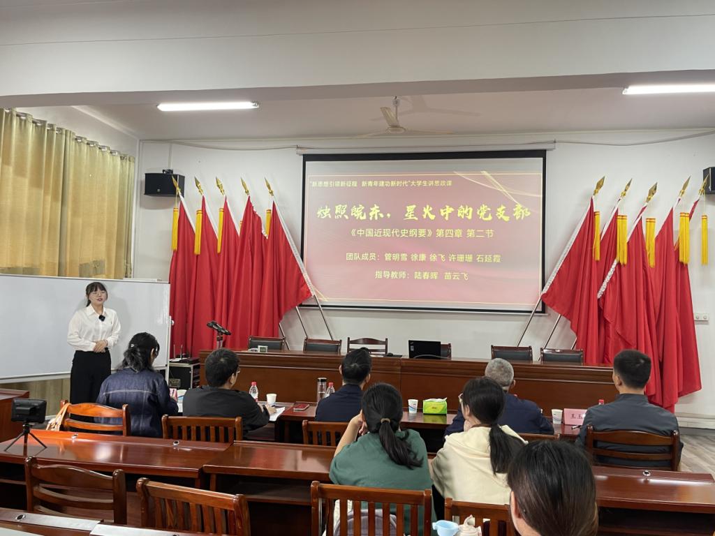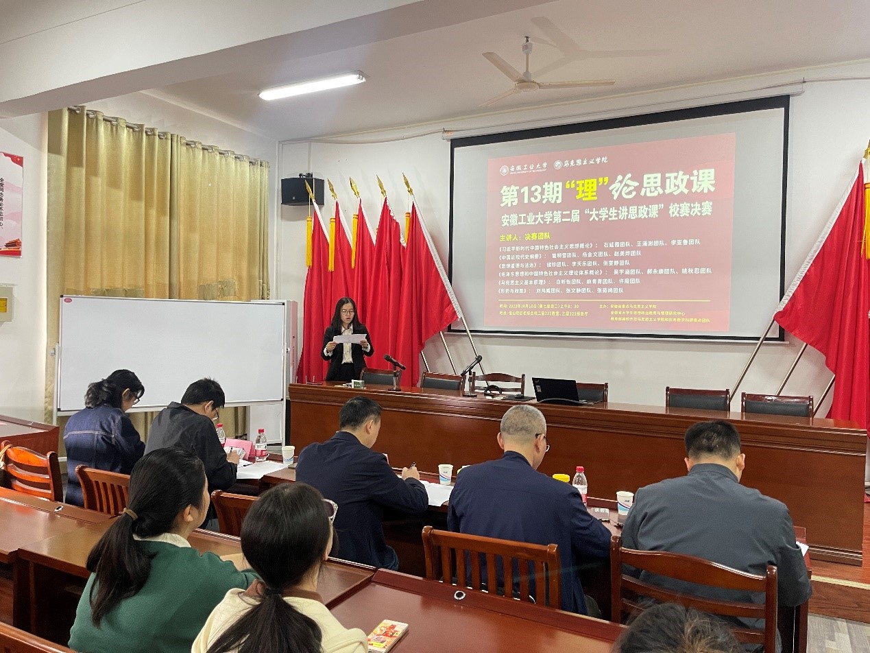为坚持不懈用习近平新时代中国特色社会主义思想铸魂育人,深化思政课改革创新,拓展大学生参与思政课实践教学途径,不断提高思政课的针对性和吸引力,引导大学生坚定不移听党话、跟党走,根据《中共安徽省委教育工委关于组织开展第二届大学生讲思政课展示活动的通知》和《关于组织开展安徽工业大学第二届“大学生讲思政课”比赛展示活动的通知》,10月10日上午,安徽工业大学第二届“大学生讲思政课”校赛决赛在马克思主义学院225、325报告厅举行。创新教育学院副院长严钟,马克思主义学院班子成员、各课程组负责人、院教学督导组成员等担任评委,入围决赛的18个参赛团队参加现场展示。