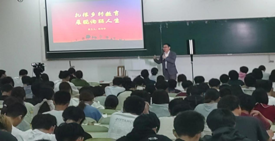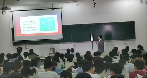 桂中华报告的题目是《扎根乡村教育 展现绚丽人生》,他围绕关键词“选择”,紧密结合自己20多年乡村执教工作经历和多次代表马鞍山市和安徽省参加教学竞赛并获得优异成绩的实际经历与体验,从“选择挑战”“选择自我”“选择感恩”“选择希望”四个方面加以展开,勉励同学们直面困难,勇于创新,懂得感恩,守护希望,做新时代的奋斗者!桂中华的整场报告时而声调和缓娓娓道来,时而风趣幽默令人忍俊不禁,他的幽默语言和说唱方式的教学展示赢得同学们阵阵热烈掌声。同学们纷纷表示桂老师的报告金句频出,很接地气、感染性强,启智润心,听后深受启发,倍感鼓舞,催人奋进。希望以后能听到更多这样的报告。