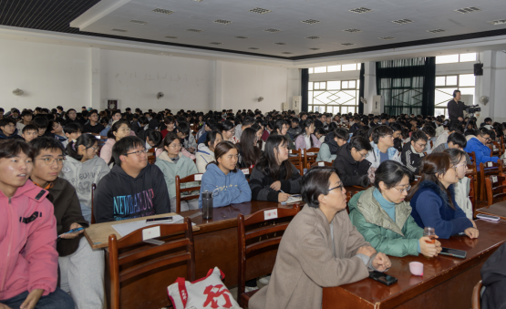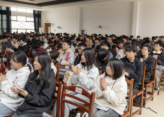 报告会上, 马钢集团技能大师、省“技术能手”、省新型战略性产业技术领军人才、全国“五一”劳动奖章获得者、全国技术能手沈飞,围绕自身的职业发展历程,生动叙述了从职场小白到不同级别技能大师的成长故事;以及立足工作岗位,用劳动和创新创造,不懈追求青春梦想,奉献岗位、贡献社会、实现个人价值追求的感人经历。通过讲述中国车轮发展的故事和未来车轮发展的趋向,围绕高铁车轮攻关、新型低噪音车轮的技术攻关,他深刻阐释了中国梦与劳动美的深刻内涵和辩证关系,强调我国科技发展走自主创新之路的重要意义。“一个人,不管从事什么工作,只要有激情,有梦想,肯吃苦,能坚持,就一定能够在平凡的岗位上找到自身的价值,谱写自己精彩的人生”,沈飞的人生座右铭在学生中引起强烈反响。