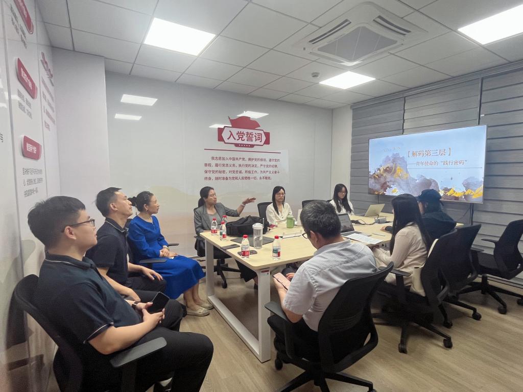 在上海交通大学马克思主义学院,邢云文院长、张巍副书记等热情接待了走访一行人员。邢云文院长通过交大马院宣传片的方式介绍了交大马院的历史沿革、基本情况,并着重分享了学院在推进以“国产商飞”为平台的“大思政课”建设以及学科团队建设、大中小学思政课一体化等方面的具体举措与经验。张巍副书记介绍了交大马院思政课社会实践、《形势与政策》等课程的建设情况及其特色做法、经验等。