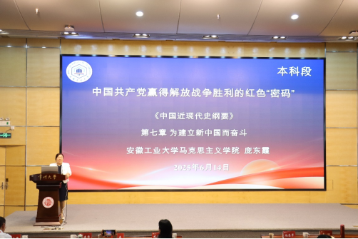 教师庞东霞以《中国共产党赢得解放战争胜利的红色“密码”》为主题,分别从民心所向、民力所聚和民意所归三个方面进行分析,采用了问题链式的教学方法,层层递进,最后揭晓红色“密码”的答案,讲清楚了“历史和人民选择中国共产党”的原因。庞老师通过AI赋能、融入红色元素(书信、故事、人物、歌曲、诗词等),既契合主题,又有力增强了课程的吸引力和感染力。