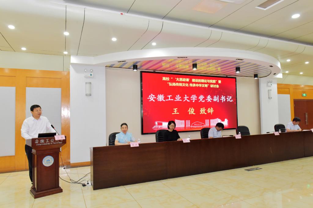 6月22日上午,我校在学术会议中心二楼报告厅举办高校“‘大思政课’建设的理论与实践”暨“弘扬传统文化 传承中华文明”研讨会,本次会议由安徽工业大学主办,安徽工业大学马克思主义学院、常州大学马克思主义学院承办来自武汉大学、陕西师范大学、江南大学、合肥工业大学、重庆大学、广东工业大学、南京师范大学等高校马克思主义学院领导、专家学者齐聚一堂,共同探讨“大思政课”建设的理论与实践。省委教育工委教育厅思政处处长王后林到会讲话,安徽工业大学党委副书记王俊致辞。开幕式由校党委宣传部部长王菁主持,省内外高校和马鞍山本地高校马克思主义学院相关负责人和师生代表、安徽工业大学马克思主义学院师生等百余人参加了本次会议。