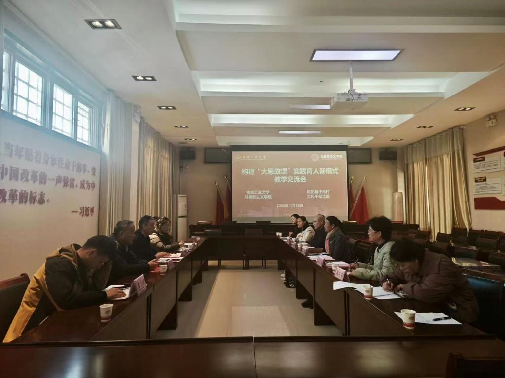 为深入贯彻落实党的二十届三中全会精神、习近平总书记关于“大思政课”建设的重要指示精神和教育部“大思政课”结对共建活动的指示要求,11月29日,安徽工业大学马克思主义学院与凤阳县小岗村大包干纪念馆,在小岗村召开构建“大思政课”实践育人新模式教学交流会,并就共建“大思政课”实践教学基地举行签约仪式。小岗村党委委员吕计跃,村党委委员、办公室主任贾贵,村旅投公司董事长杨永强等参加,安徽工业大学马克思主义学院院长郑洁、院工会主席毕圣海,“概论”教研室主任阮超群、党支部书记周玉英等参加。会议由党的二十大代表、小岗村党委书记、村委会主任周群之主持。