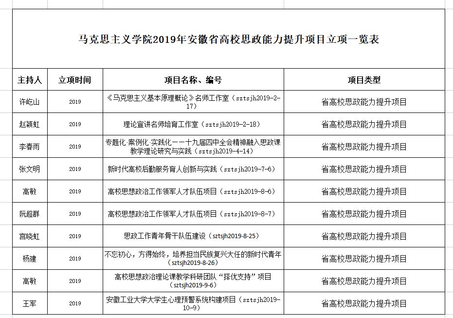 马克思主义学院2019年安徽省高校思政能力提升项目立项一览表