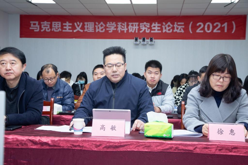 12月19日,由我校马克思主义学院、郝文清名师工作室、安徽农业大学马克思主义学院、安徽财经大学马克思主义学院、淮北师范大学马克思主义学院共同主办的2021年马克思主义理论学科研究生论坛在我校秀山校区隆重举行。论坛采用线下线上结合方式,同时在安徽农业大学、安徽财经大学、淮北师范大学设置了分会场,来自中国人民大学、武汉大学、南开大学、西安交通大学、河海大学、西南大学、安徽师范大学以及主办单位等国内40多所高校的博士研究生、硕士研究生150余人参加论坛。论坛开幕式由我校马克思主义学院党委书记徐惠主持。