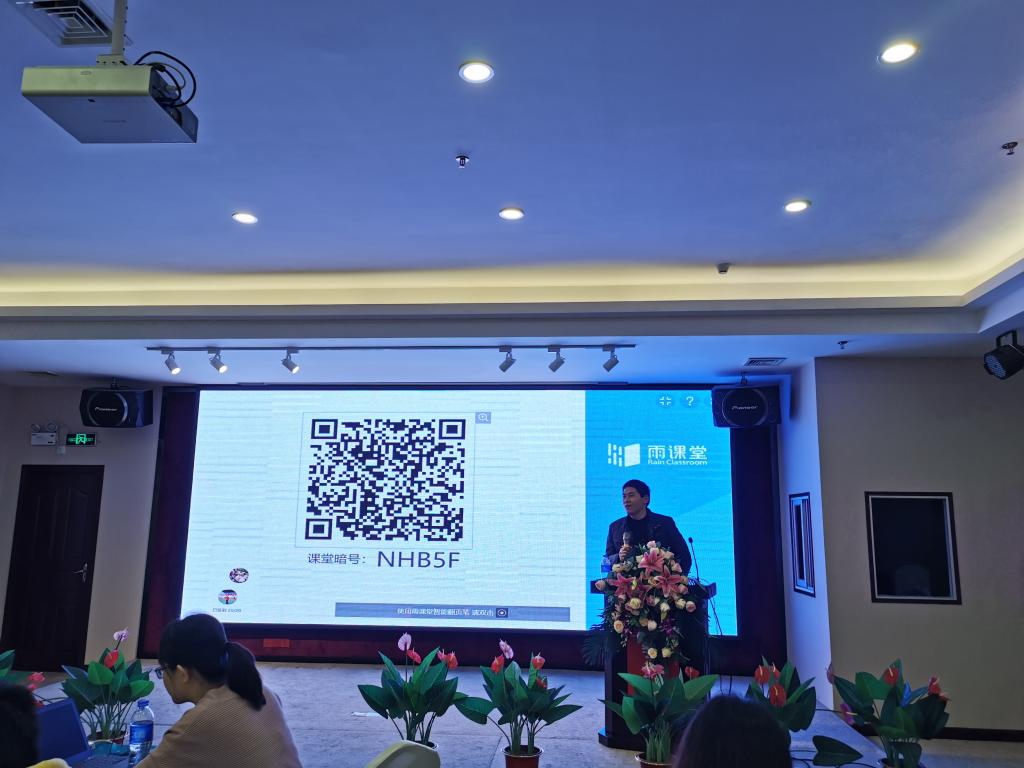 教师毕圣海,作为小组推选代表,提前对“概论”课有关章节的教学课件,进行了课件提升和改造,并现场演示了基于雨课堂的混合式教学设计成果,受到现场导师和参培教师好评。