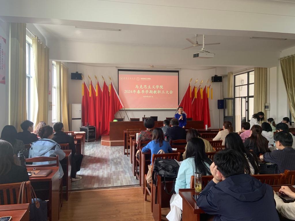4月1日下午,马克思主义学院在学院楼325学术报告厅召开2024年春季学期第二次教职工大会,会议由学院党委书记徐惠主持,学院全体教职工参会。