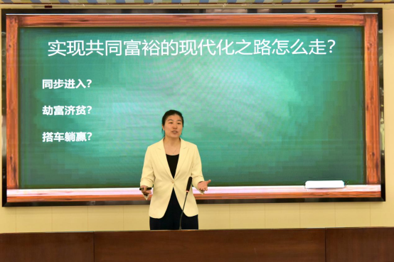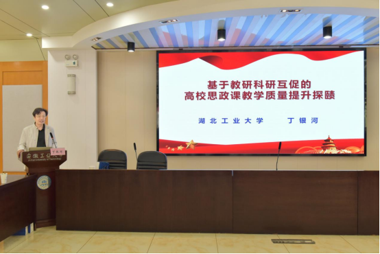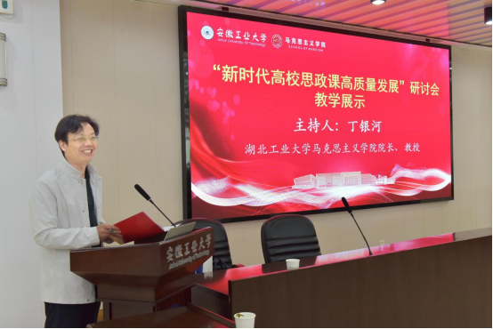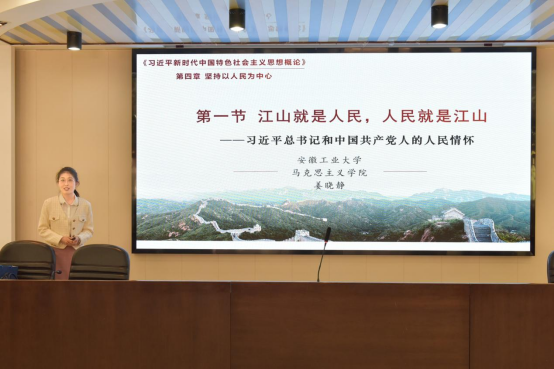 在教学展示环节,第三届全国高校思政课教学展示活动一等奖获得者、北京工业大学的赵聪聪,安徽工业大学的姜晓静分别作“实现共同富裕的现代化之路怎么走”“‘ 江山就是人民,人民就是江山’—— 习近平总书记和中国共产党人的人民情怀”的教学展示。湖北工业大学马克思主义学院院长丁银河主持并进行点评。