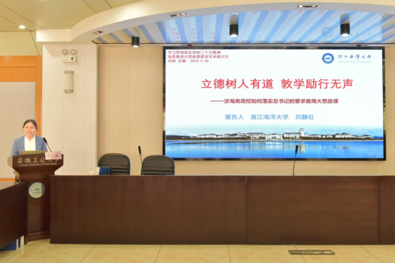 在院长论坛环节,湖北工业大学马克思主义学院院长丁银河、安徽工程大学马克思主义学院院长吴月红、浙江海洋大学马克思主义学院院长贝静红、马鞍山学院马克思主义学院院长蔡保兴、马鞍山师范高等专科学校马克思主义学院院长单守金、皖江工学院马克思主义学院常务副院长刘双、安徽工业大学马克思主义学院副院长林忠心等围绕思政课教学科研互促、“大思政课”实践育人体系建设、思政课守正创新等作了主旨发言。安徽工业大学马克思主义学院院长主持了开幕式和专家报告。浙江海洋大学马克思主义学院院长贝静红和安徽工业大学马克思主义学院副院长林忠心主持。