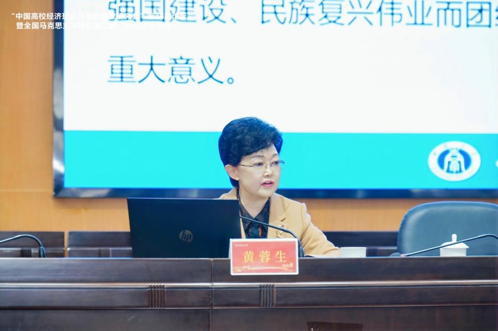 中国高校经济理论与思政教改研究会会长徐奉臻教授对研究会历届年会的举办情况进行了回顾总结,对长期以来支持研究会发展的单位和会员表示感谢。她希望专家们聚焦“研究经济理论,服务思政教改”宗旨,深入交流研讨,取得丰硕成果。
