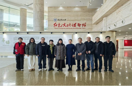 到访人员。贺俊杰副院长介绍了浙江理工大学马克思主义学院的历史沿革、基本情况,并着重分享了学院红色文化研究的发展历程和取得的标志性成果以及大中小思政教育一体化建设推进情况。王艳娟副院长以“红馆建设与红色宣讲实践”为主题进行分享,详细介绍了学院红色文化品牌建设的历程及其在传播红色文化方面的重要价值。学院一行还在章迪薇副院长的带领下实地参观了该校“红色文化讲习馆”“丝绸博物馆”和“蚕学馆”,深入了解其“大思政课”实践育人教学改革模式。双方还围绕红色文化建设、大中小学思政教育一体化建设、人才培养等进行了深入交流。