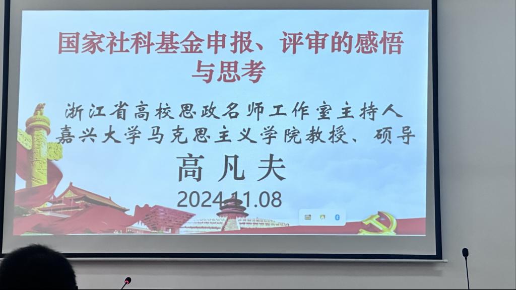 11月8日上午,马克思主义学院学院在325报告厅举行“佳山论坛之明理讲坛”第19、20期,邀请嘉兴大学马克思主义学院教授高凡夫做了题为“中共创建与一大代表的人生轨迹”和“国家社科基金申报、评审的感悟与思考”两场学术讲座,讲座由学院副院长宫晓虹主持。学院全体教师、部分研究生代表参加。