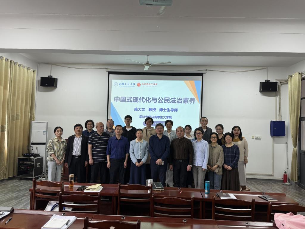 为提升学术视野、搭建学术交流平台,4月21日下午,学院邀请同济大学马克思主义学院教授、博士生导师陈大文来人妻av 作题为“中国式现代化与公民法治素养”的讲座,学院全体师生参加,讲座由郑洁院长主持。