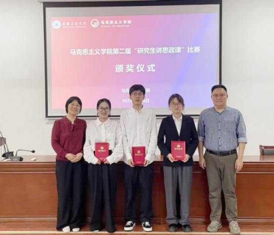 研究生精神风貌与专业素养的精彩舞台。此次比赛不仅是一次展示自我、提升能力的机会,更是一场思想的碰撞与智慧的交流。希望同学们能够从小切口讲大道理,用身边人讲述身边事,深入阐释“中国共产党为什么能、马克思主义为什么行、中国特色社会主义为什么好”,让理论与实践相结合,在教学中展现新时代马克思主义理论研究生的理论素养和精神风貌。